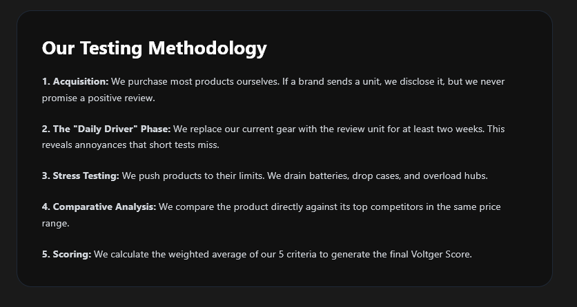 2. The "Daily Driver" Phase: We replace our current gear with the review unit for at least two weeks. This reveals annoyances that short tests miss.